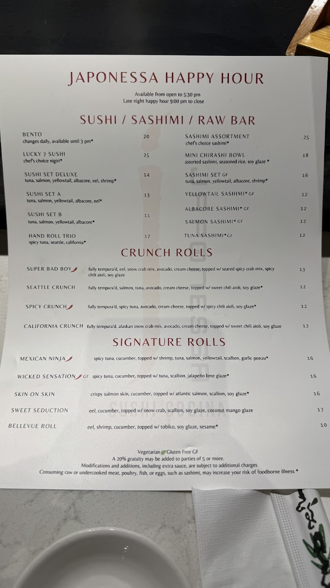 With exceptional happy hour offerings and reasonable prices, Japonessa is indeed a treasure in Bellevue. Numerous patrons recommend arriving early to take full advantage of the vibrant early evening scene, particularly before 5:30 PM when you can snag some amazing happy hour deals. There’s a genuine sense of hospitality that resonates throughout, encouraging diners to return time and again.